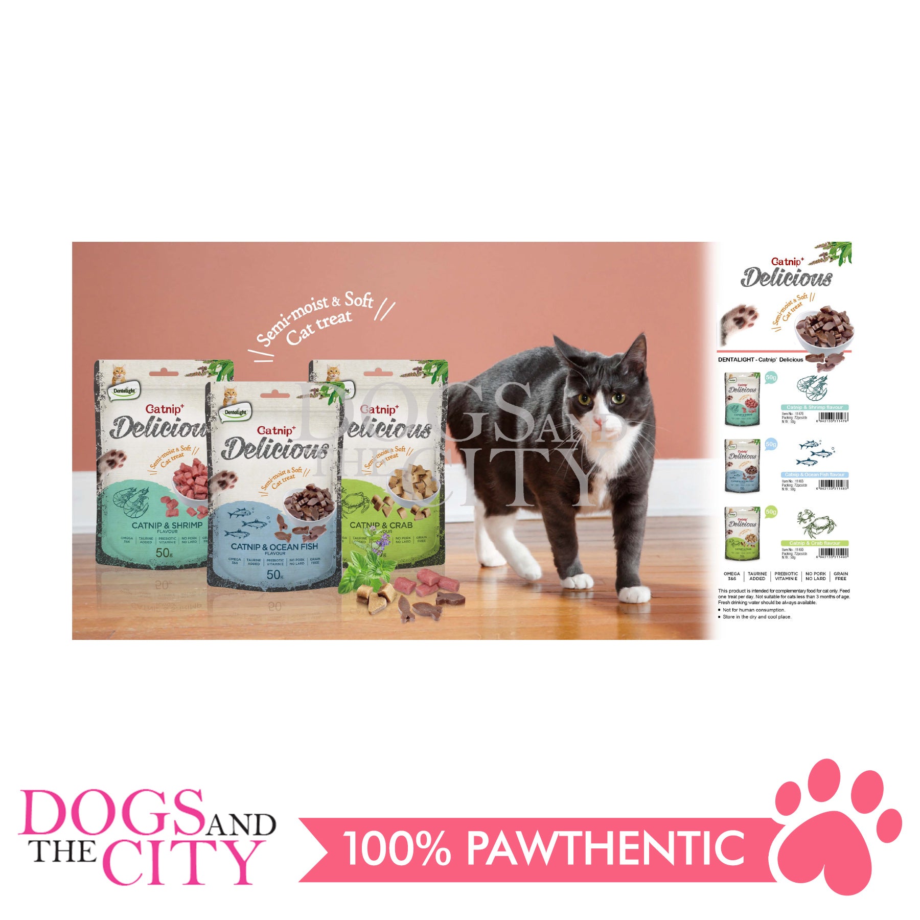 Dentalight Catnip Delicious Cat Treats Catnip & Shrimp – our catnip delicious cat treats is made with real white meat tuna and shrimp. Unique moist and soft chewing texture and shape design. No pork, no lard, grain free, adding catnip that your cats will love to eat and you will find it is easy for training will fun.  Composition:  Tuna, chicken, shrimp, catnip powder, glycerin, lecithin, potato starch, pea protein, tapioca starch, rosemary, salmon oil, multi-vitamins, taurine natural colorant, shrimp flavor, mannose-oligosaccharides.  Catnip & Cramb – our catnip delicious cat treats is made with crab. Unique moist and soft chewing texture and shape design. No pork, no lard, grain free, adding catnip that your cats will love to eat and you will find it is easy for training will fun. Composition:  Tuna, chicken, crab, catnip powder, glycerin, lecithin, potato starch, pea protein, tapioca starch, rosemary, salmon oil, multi-vitamins, taurine natural colorant, shrimp flavor, mannose-oligosaccharides. Catnip & Ocean Fish – our catnip delicious cat treats is made with real deep sea fish. Unique moist and soft chewing texture and shape design. No pork, no lard, grain free, adding catnip that your cats will love to eat and you will find it is easy for training will fun. Composition:  Potato starch, powdered cellulose, fish powde, catnip powder, brewer’s yeast, sodium caseinate, coconut oil, salmon oil, peppermint, seaweed powder, glycerin, soyabean lecithin, multi-vitamins, taurine, fish flavor, mannose-oligosaccharides.  This product is intended for complementary food for cat only. Feed 15mg per day.  Not Suitable for cats less than 6 months of age.  Not for human consumption  Store in dry & cool place.