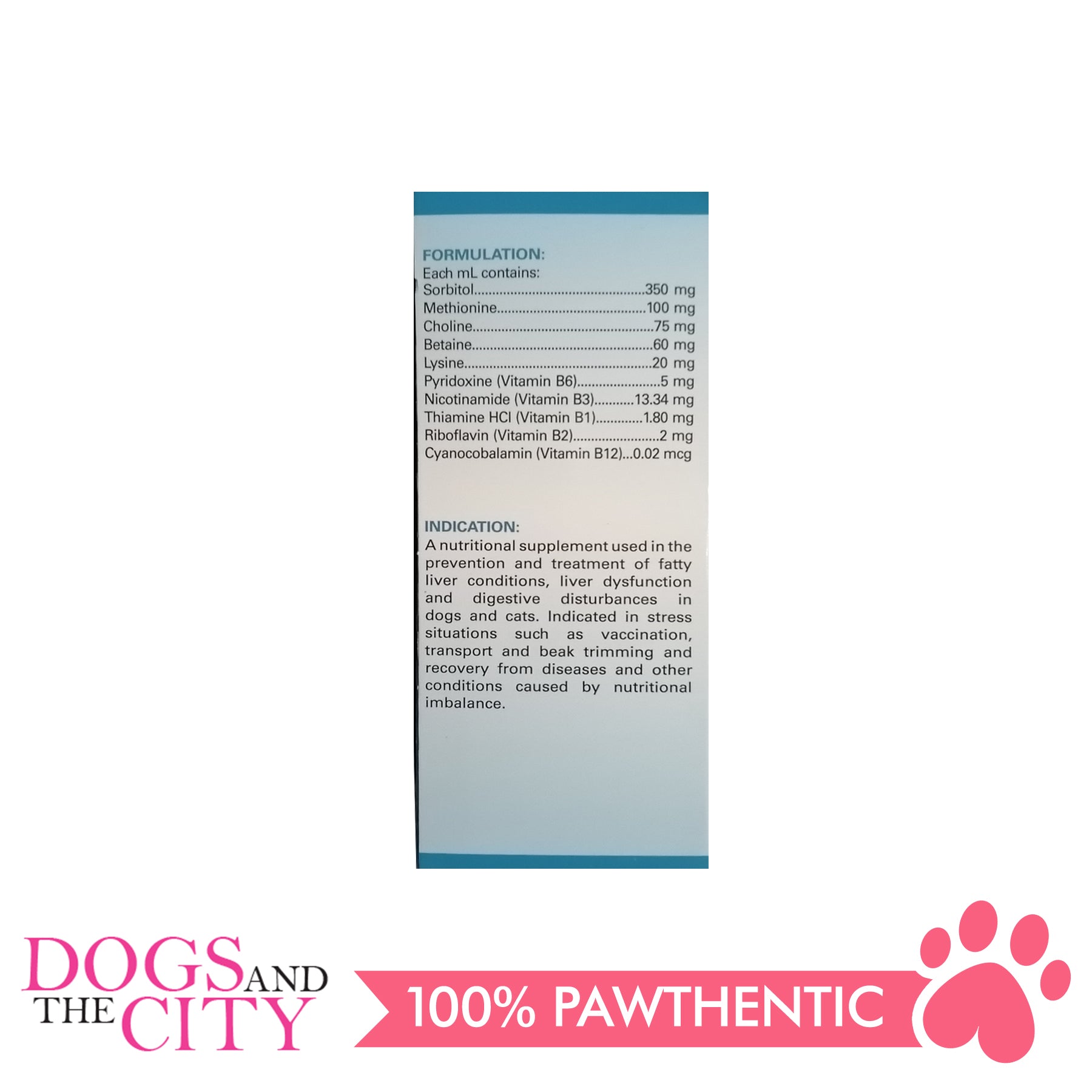 contains Sorbitol + Amino Acids + Betaine + Vitamin B complex for Dogs and Cats