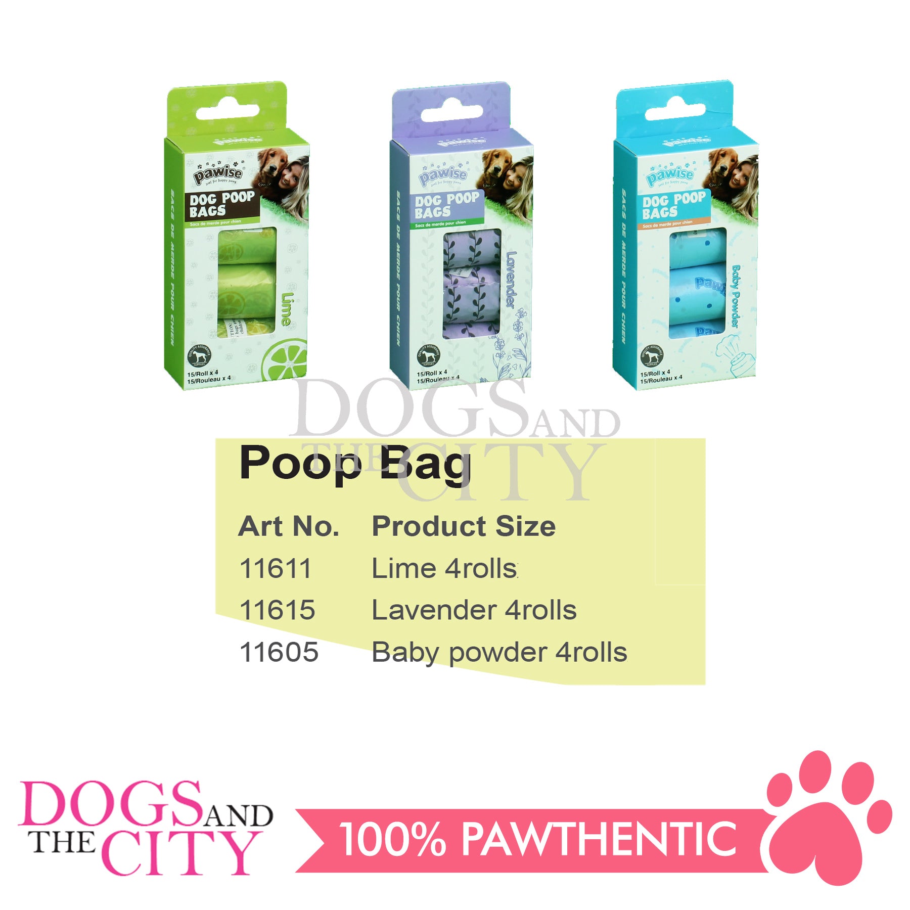 Pawise 11605 Poop Bags Spice Baby Powder 4rolls*15st-32*19cm Blue