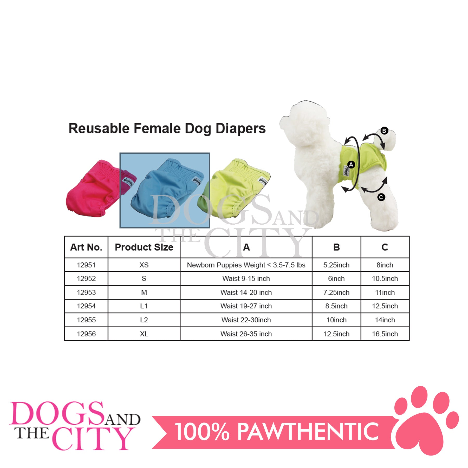 Pawise 12951 Premium Reusable Diapers for Female Dog Diapers - Extra Small 3pcs/pack