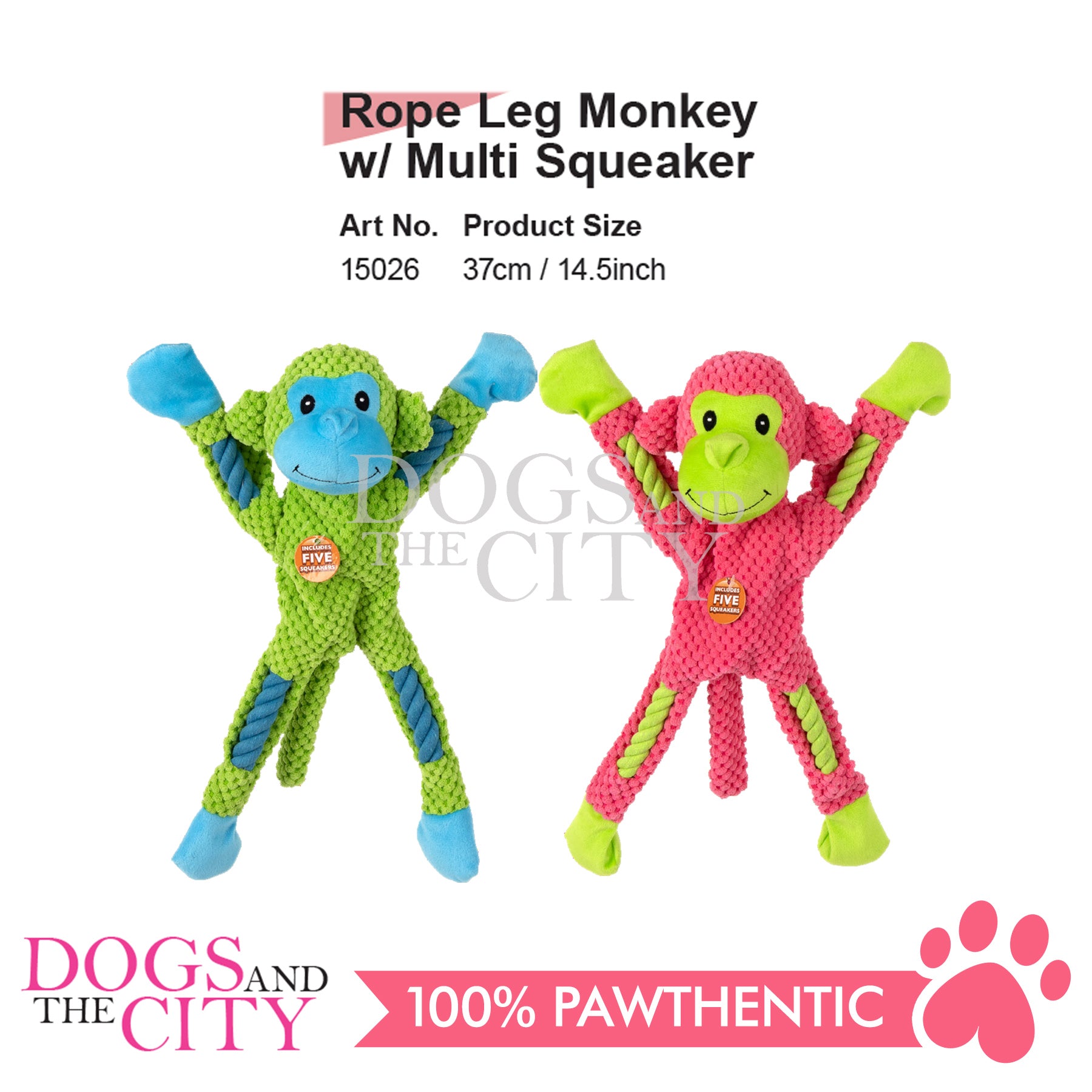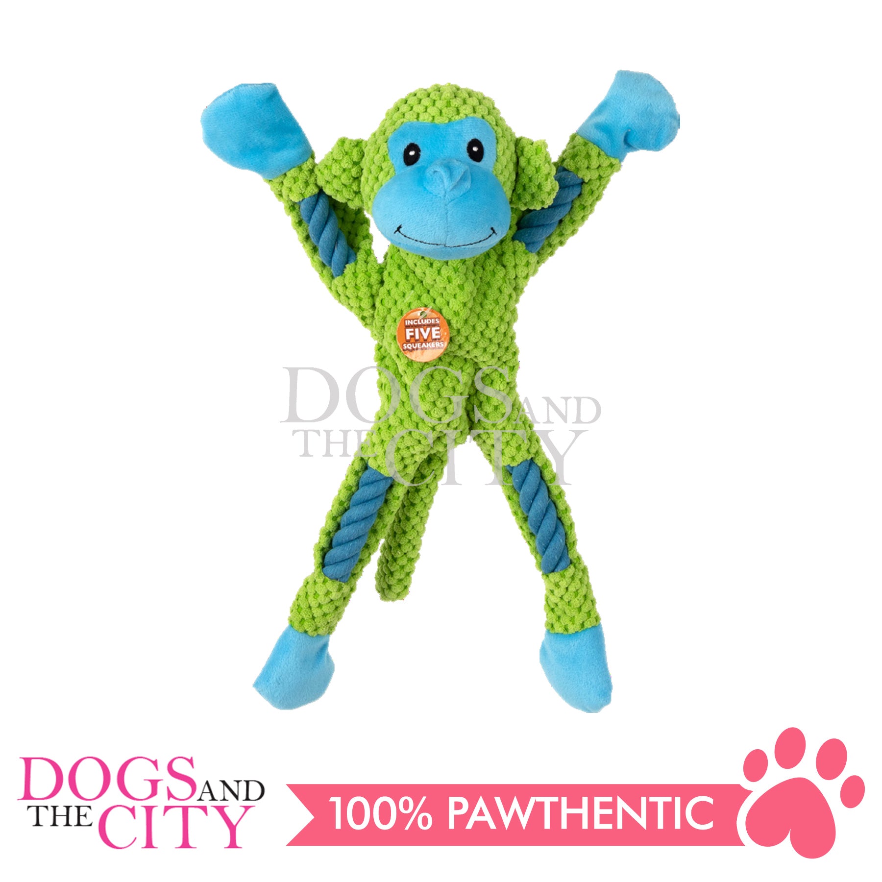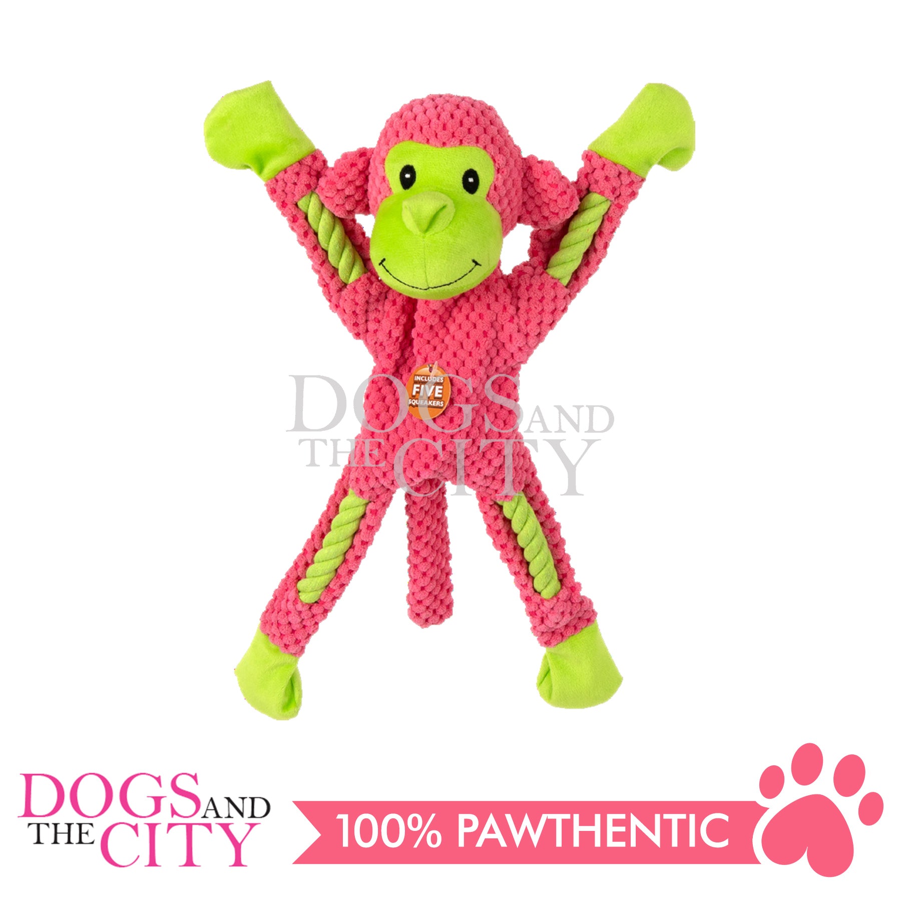 Pawise 15026 Rope Leg Monkey w/Mullti Squeaker Pet Toys 37cm