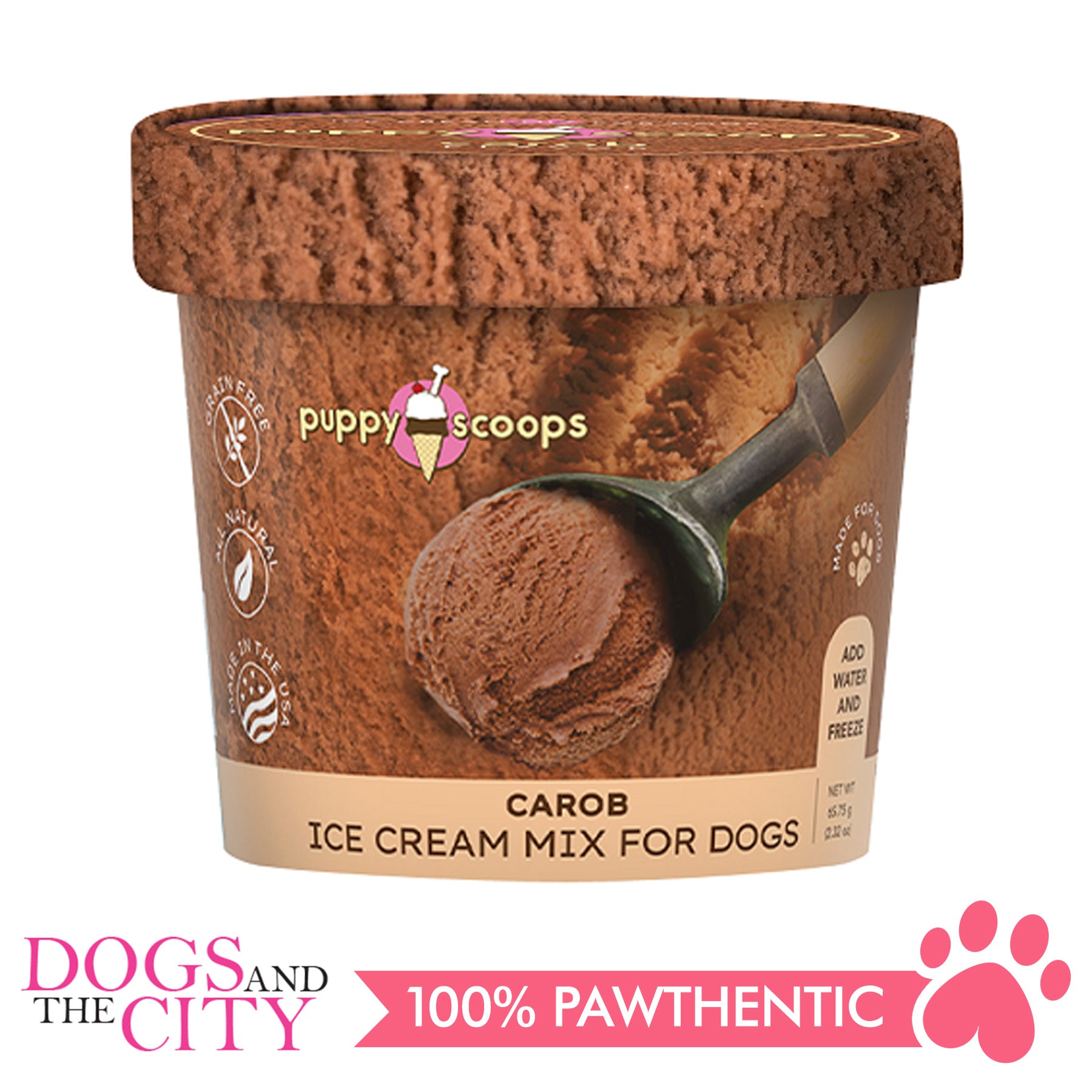 Everyone knows that dogs can’t have chocolate or so we thought but now they can! Carob is a natural chocolate substitute that is completely safe for dogs to consume. Our Carob flavored Puppy Scoops is rich, creamy and smooth, which will have your dog begging for more. A pint of Puppy Scoops in any flavor is the perfect gift for dog lovers and pet parents who have dogs and want to feed them exceptional dog food. Dog birthdays should be celebrated with cake and ice cream treats! Puppy Scoops is the perfect dog ice cream recipe for ice treats for dogs that deserve the very best! Just add water, freeze and enjoy!