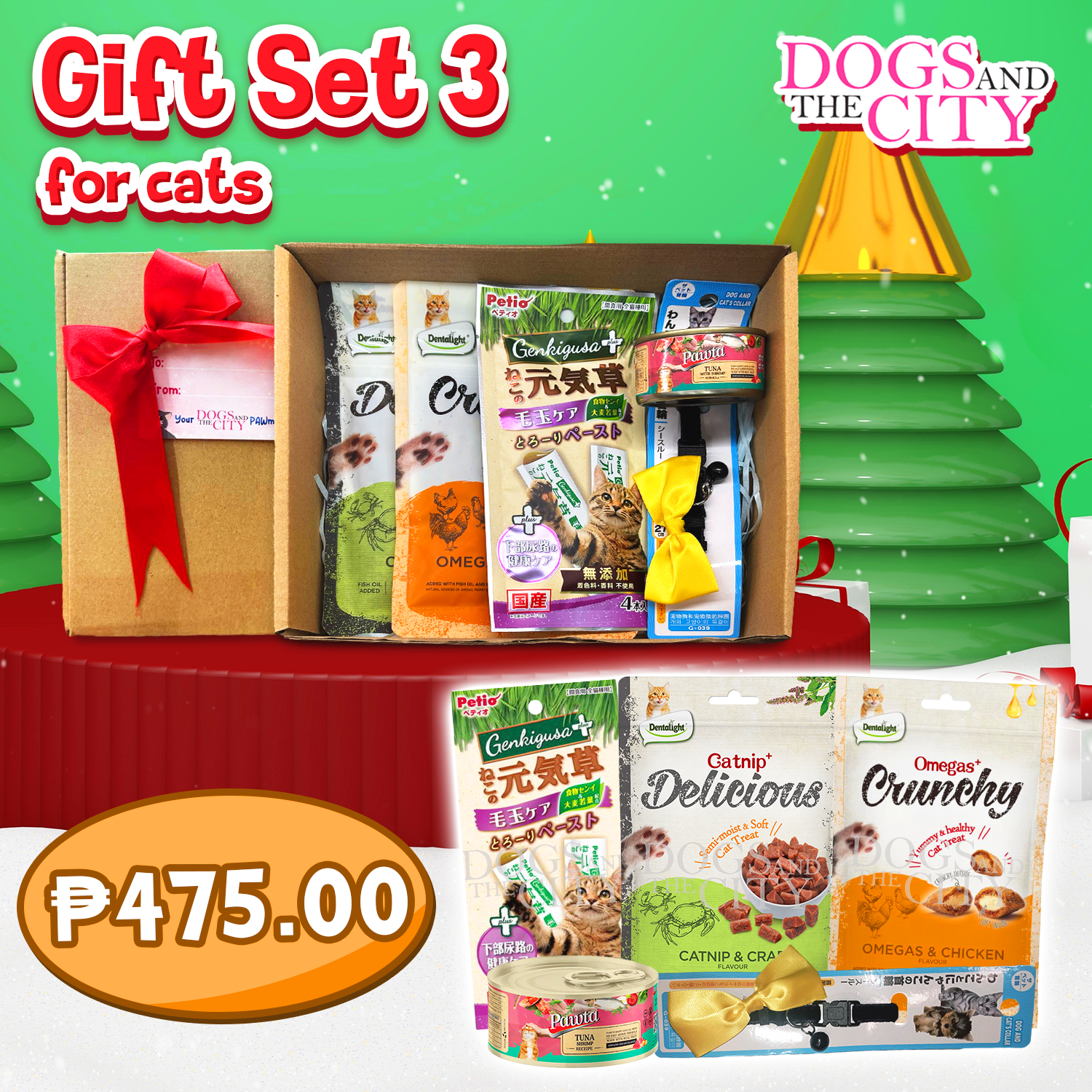 Celebrate the holiday pawsome season with a healthy and happiness gift set for your pooch. Our gift box is filled with packs of cat treats happiness and prevents boredom. Comes with a mailer gift box.