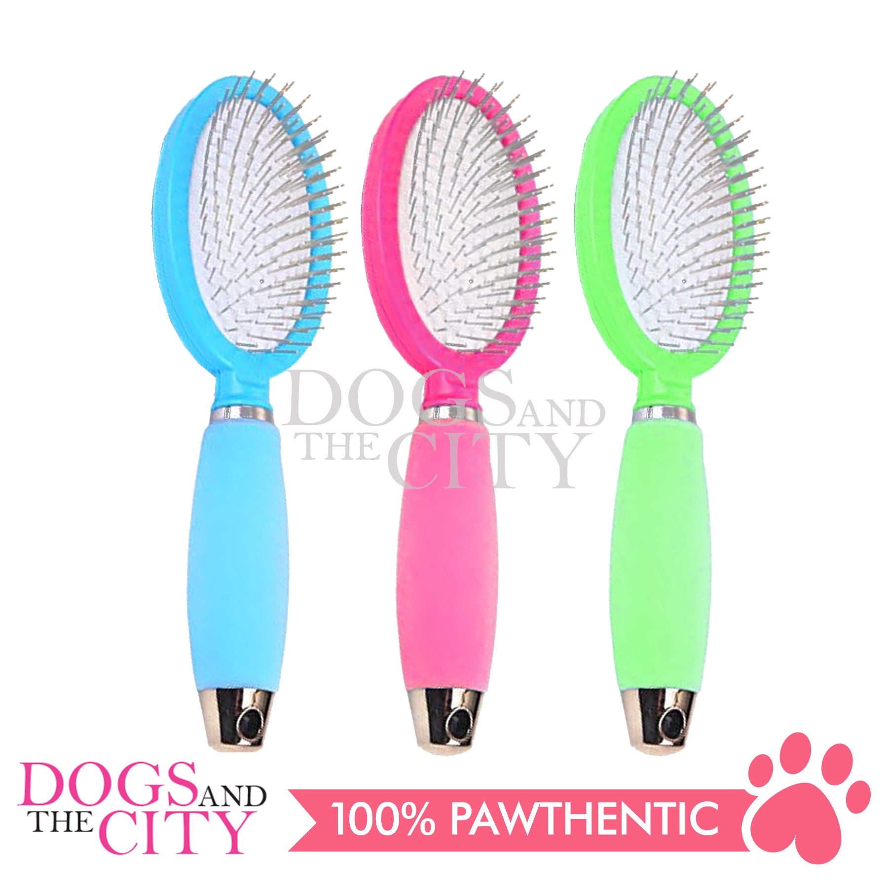 PROFESSIONAL GROOMING: Stainless steel pin head brush is suitable forsmall to medium sized dogs. Itgets rid of matts, long & short loose hairs and dirt, removes shedding and tangles, dematts the coat, good for massaging, bathing and self-cleaning, great for increasing blood circulation, leaves our pets fur soft and shiny.