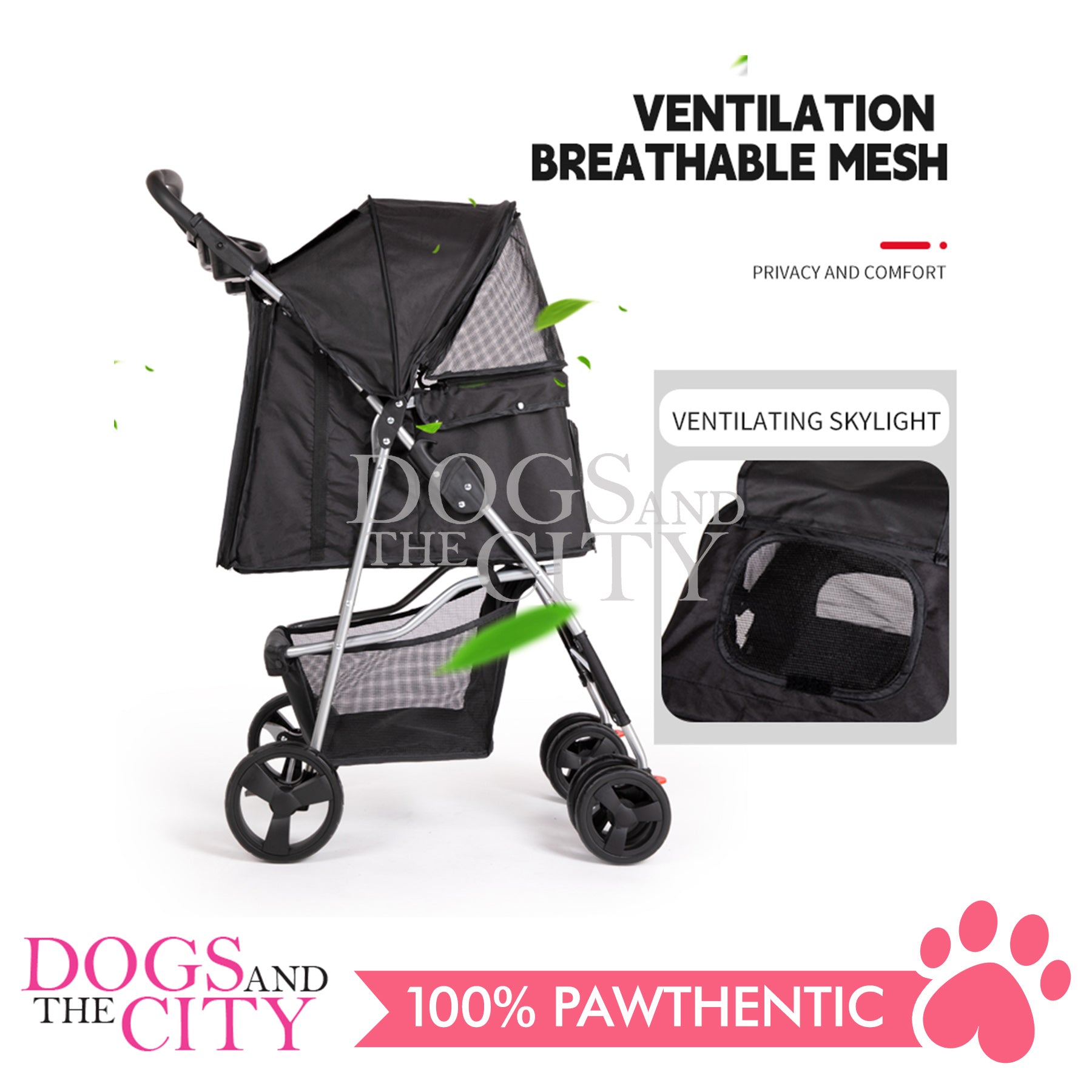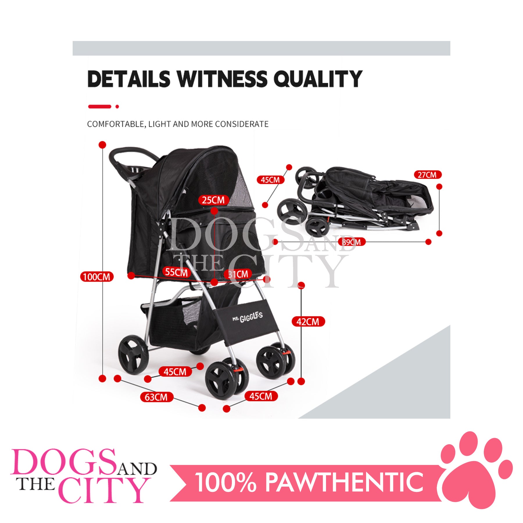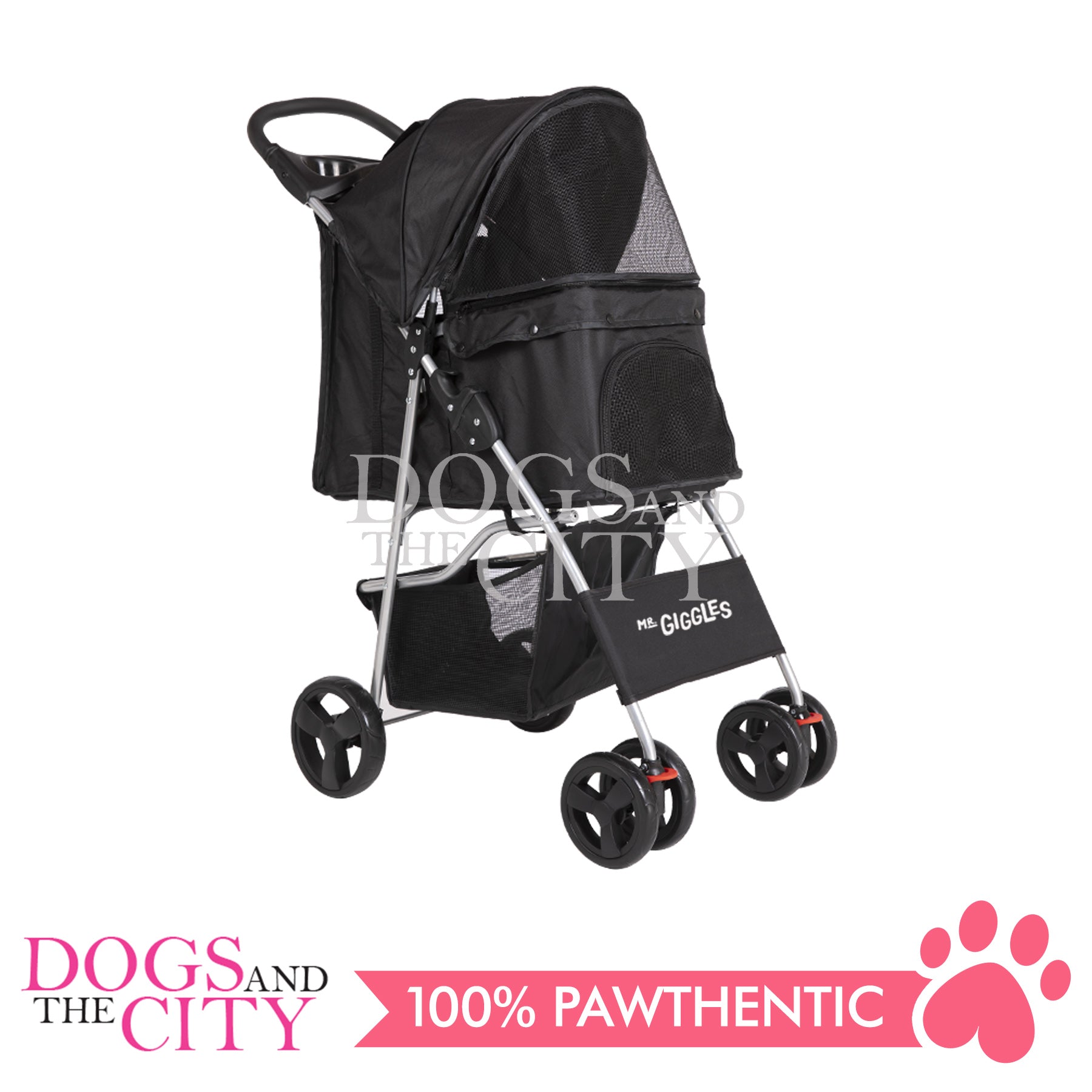 Mr. Giggles SP02 4 Wheels Pet Stroller with One Hand Folding Black