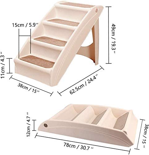 - 【DURABLE AND EASY TO USE】 The foldable pet stairs are made of tough and durable plastic. Can be easily folded for storage and travel and re-opened without any tools. Easy to store, carry and move when you travel.