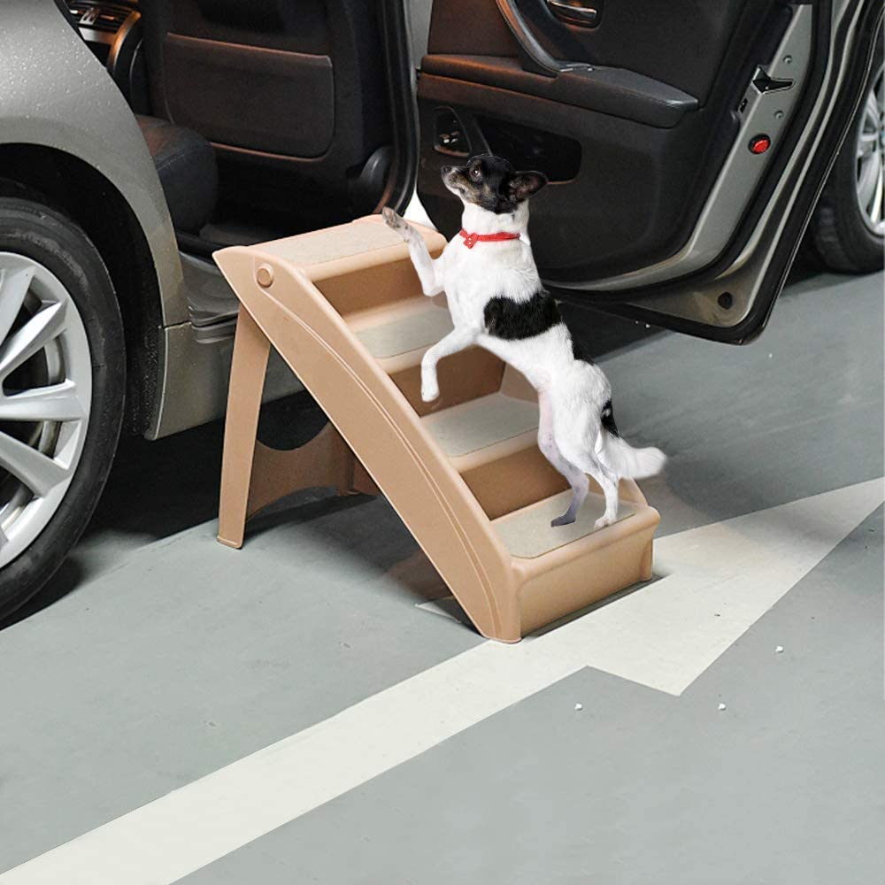 - 【PERFECT FOR INDOOR & OUTDOOR USE】 The foldable plastic pet steps are great for indoor and outdoor use, perfect for helping pets reach higher places. When collapsed these foldable, compact stairs fit easily in the closet, under furniture or in the trunk of your car.