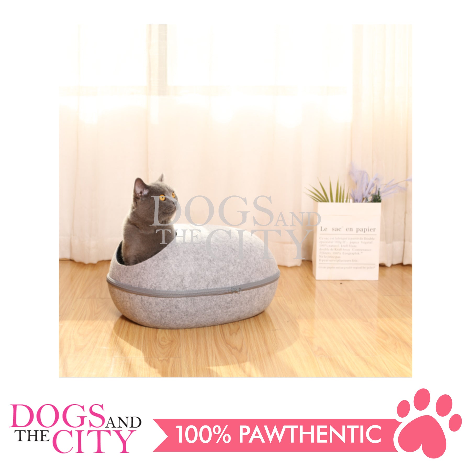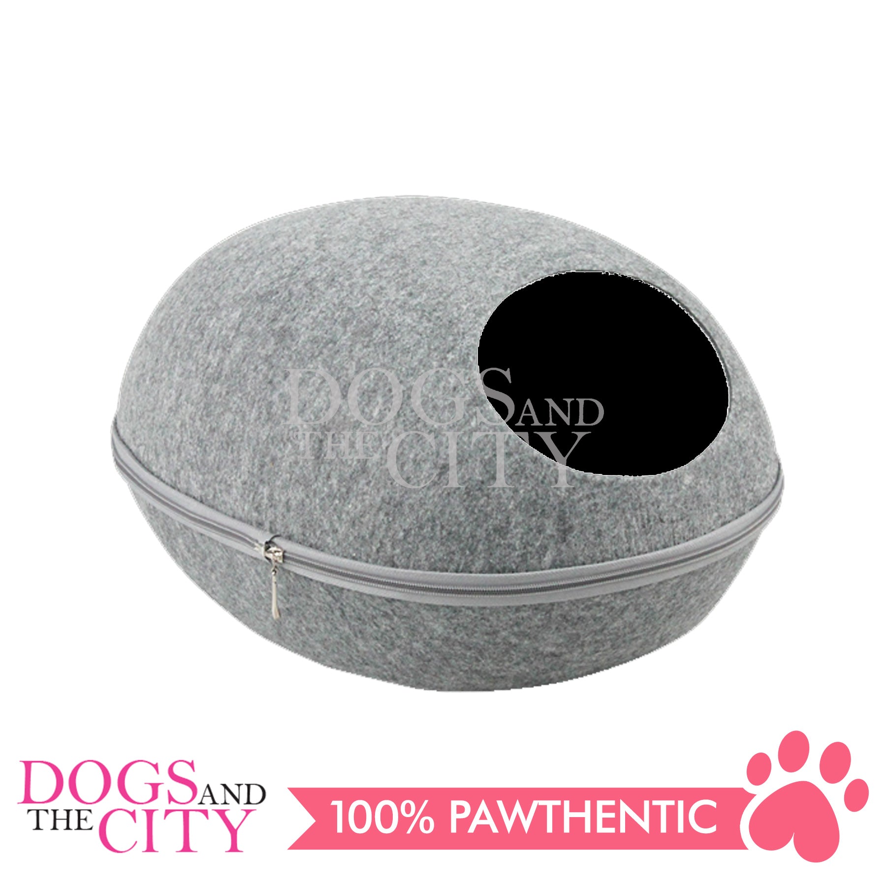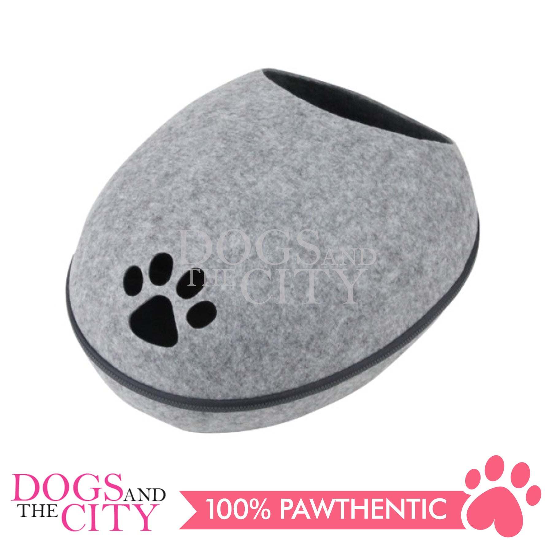 The soft hand-stitched edge of the small entrance window allows the perfect cat-sized access point to this cozy and enclosed cave.