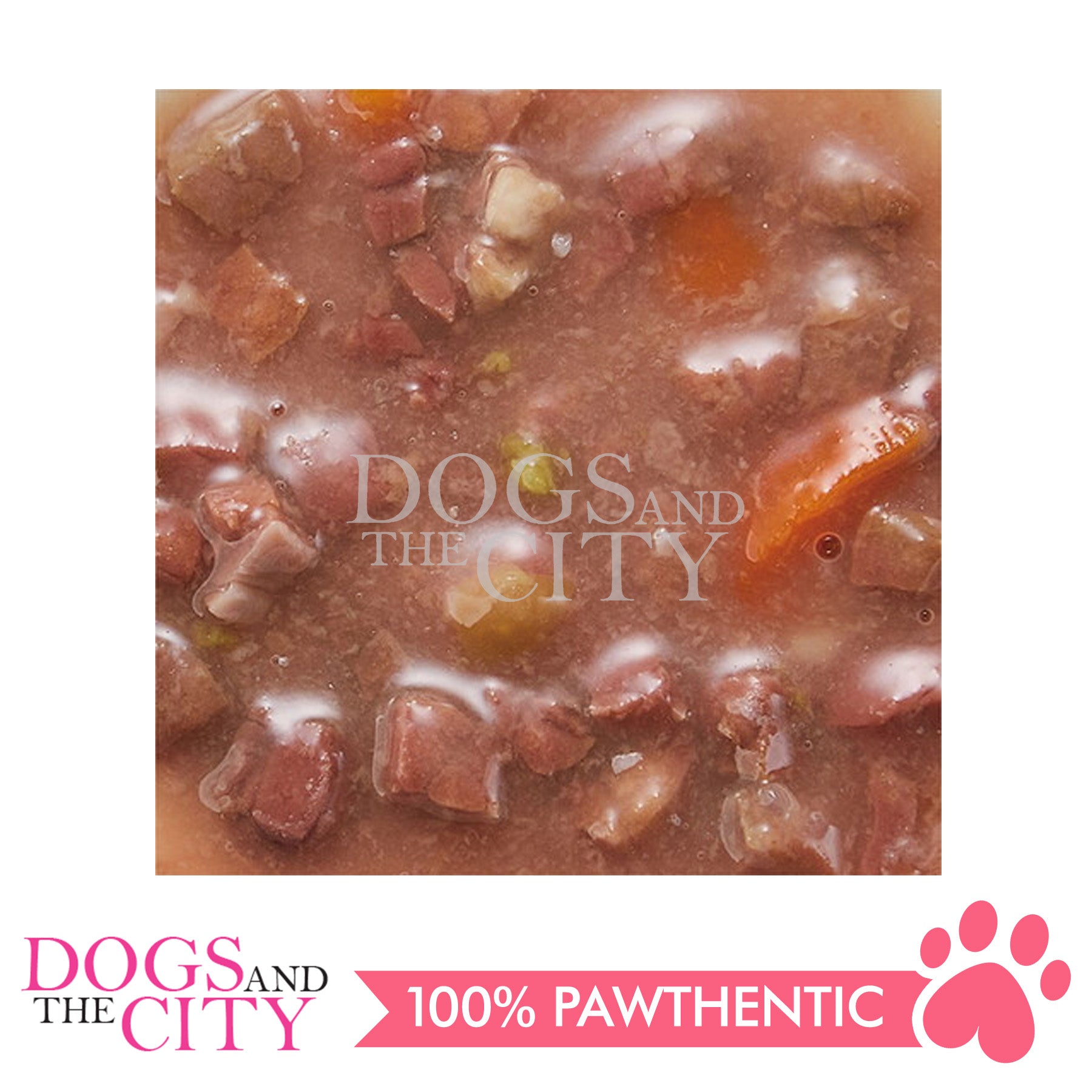 Meat (beef), vegetables (green peas, carrots), beef extract, thickeners (guar gum, xanthan gum)