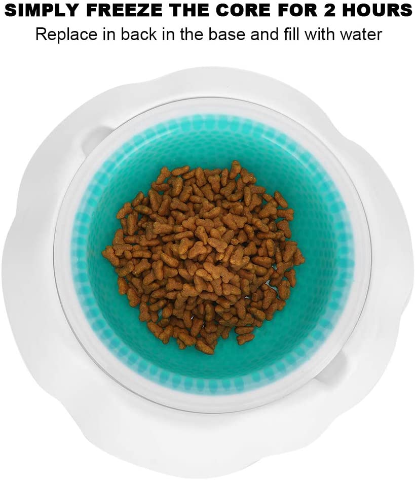 - Simply freeze the inner bowl for 2 hours, then replace in back in the base and fill with water or food.
