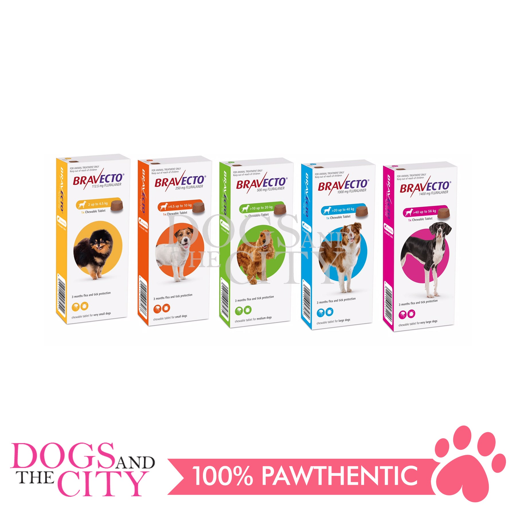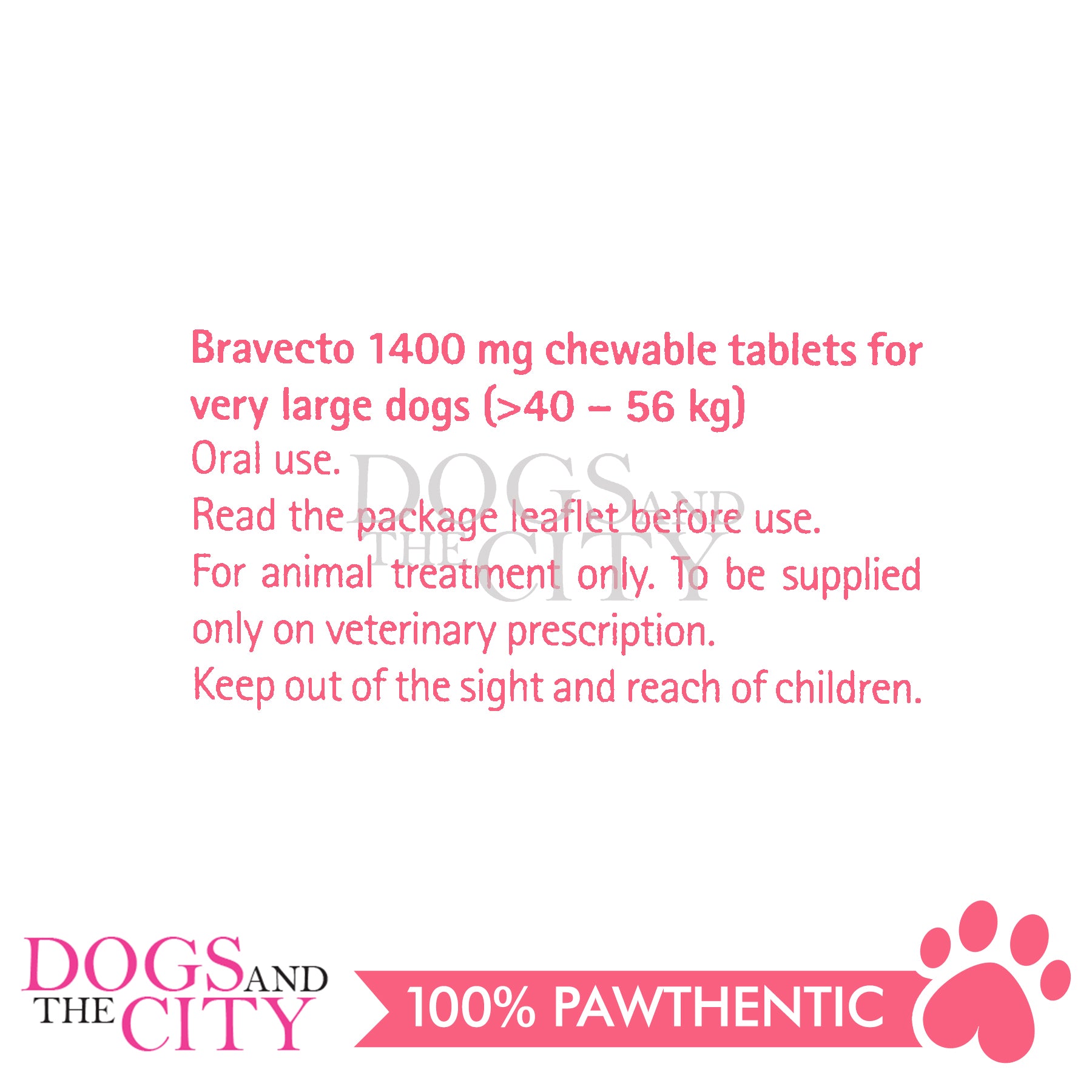 Bravecto Chew Purple for Extra Large Dogs is suitable for giant and large breeds between 40-56kg such as Great Danes and Saint Bernards. It is available for smaller dogs, see below for more in the Bravecto range.