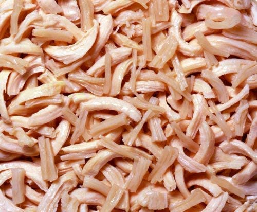 Chicken fillet, scallop, jelly, modified starch, carrageenan, tapioca starch, guar gum, vitamin E and green tea powder.