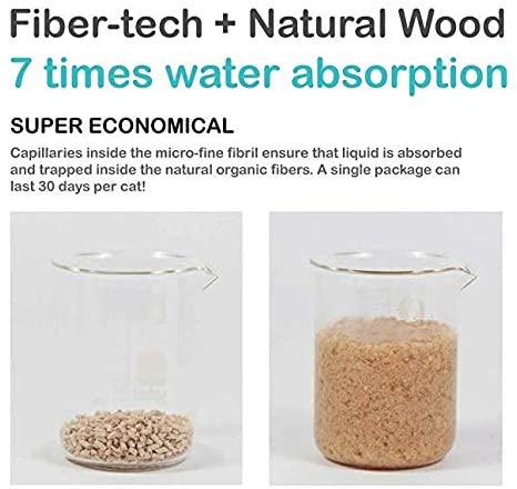 Capillaries inside the micro-fine fibrils ensure that liquid is absorbed and trapped inside the natural organic fibers. A single package can last 30 days per cat!