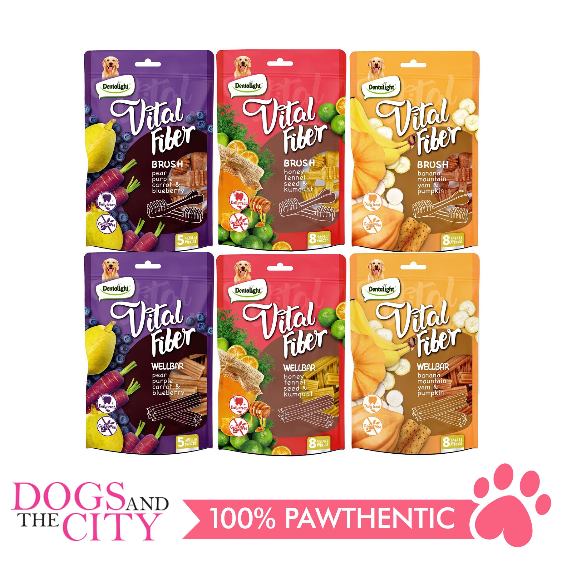 DENTALIGHT 10103 3.7INCH Medium Vital Fiber Brush×5pcs 85g Pear, Purple Carrot, Blueberry