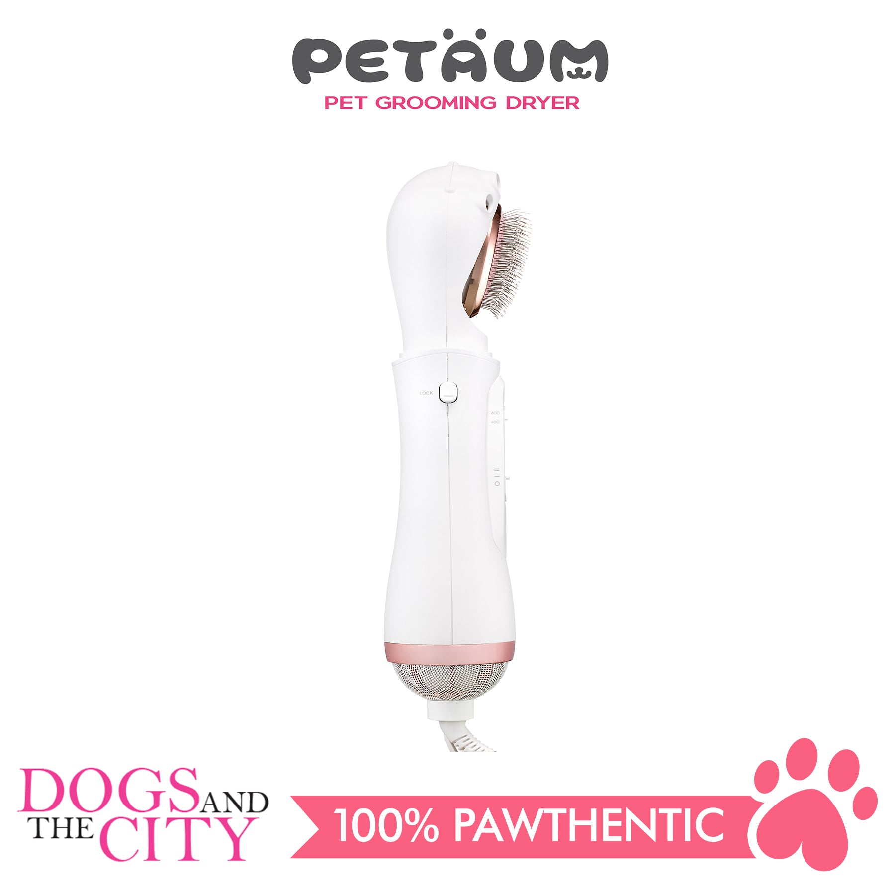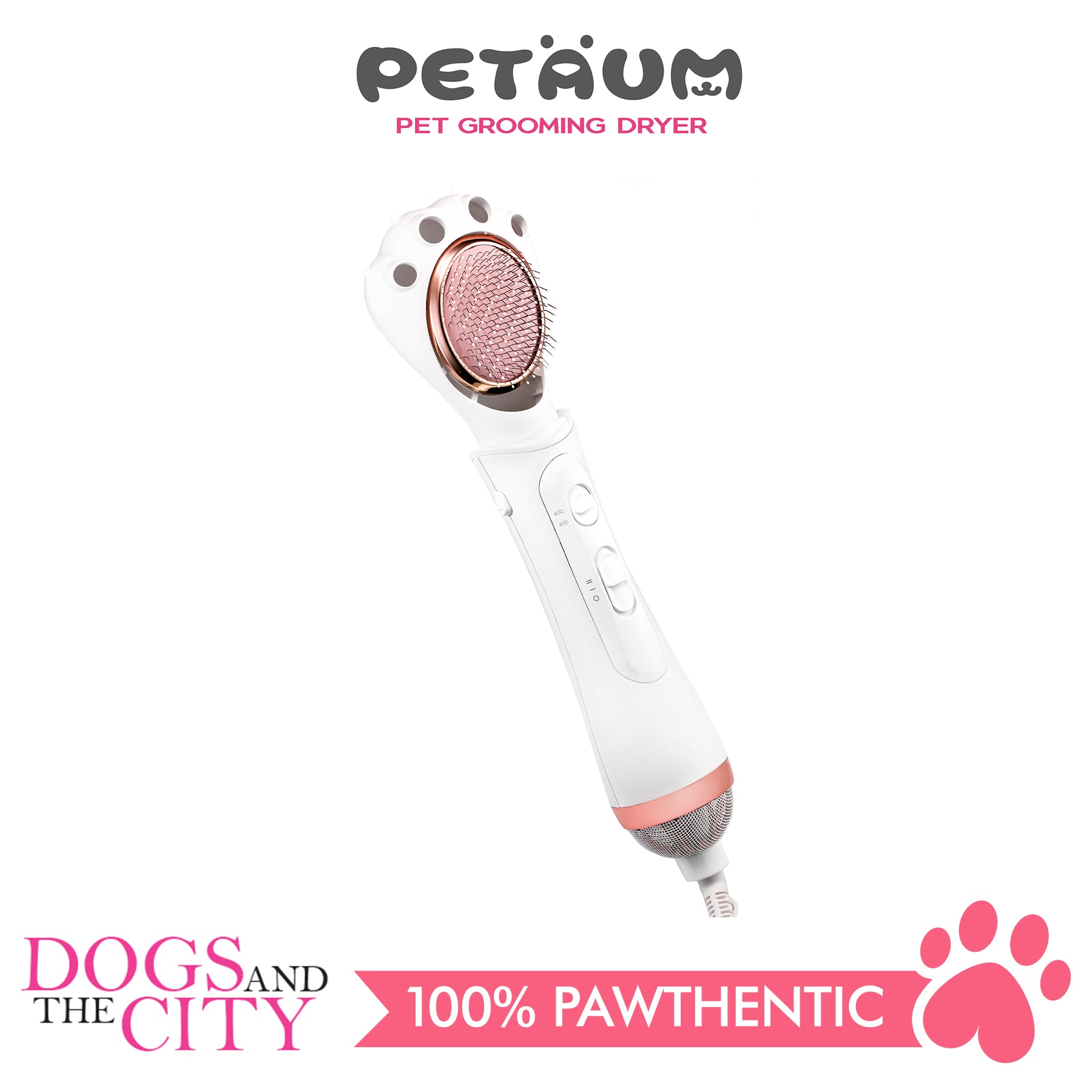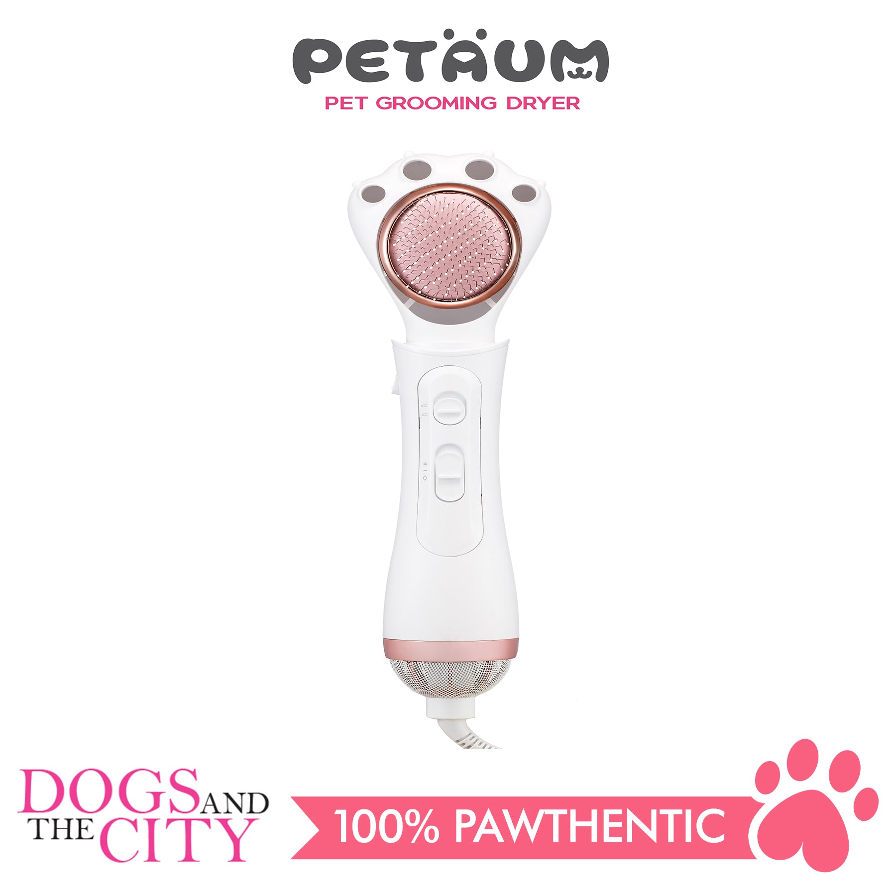 The Petaum Grooming Dryer is a combination of a dryer and a brush that is specially designed for pets. Each set comes with 2 brushes; the slicker and the pin brush. Both power and temperature levels of the Grooming Dryer are regulated to promote healthy skin and shiny coats and because drying and brushing can be done at the same time, grooming is 30% faster as compared to using a conventional dryer and a brush. 220 volts. Made in Korea