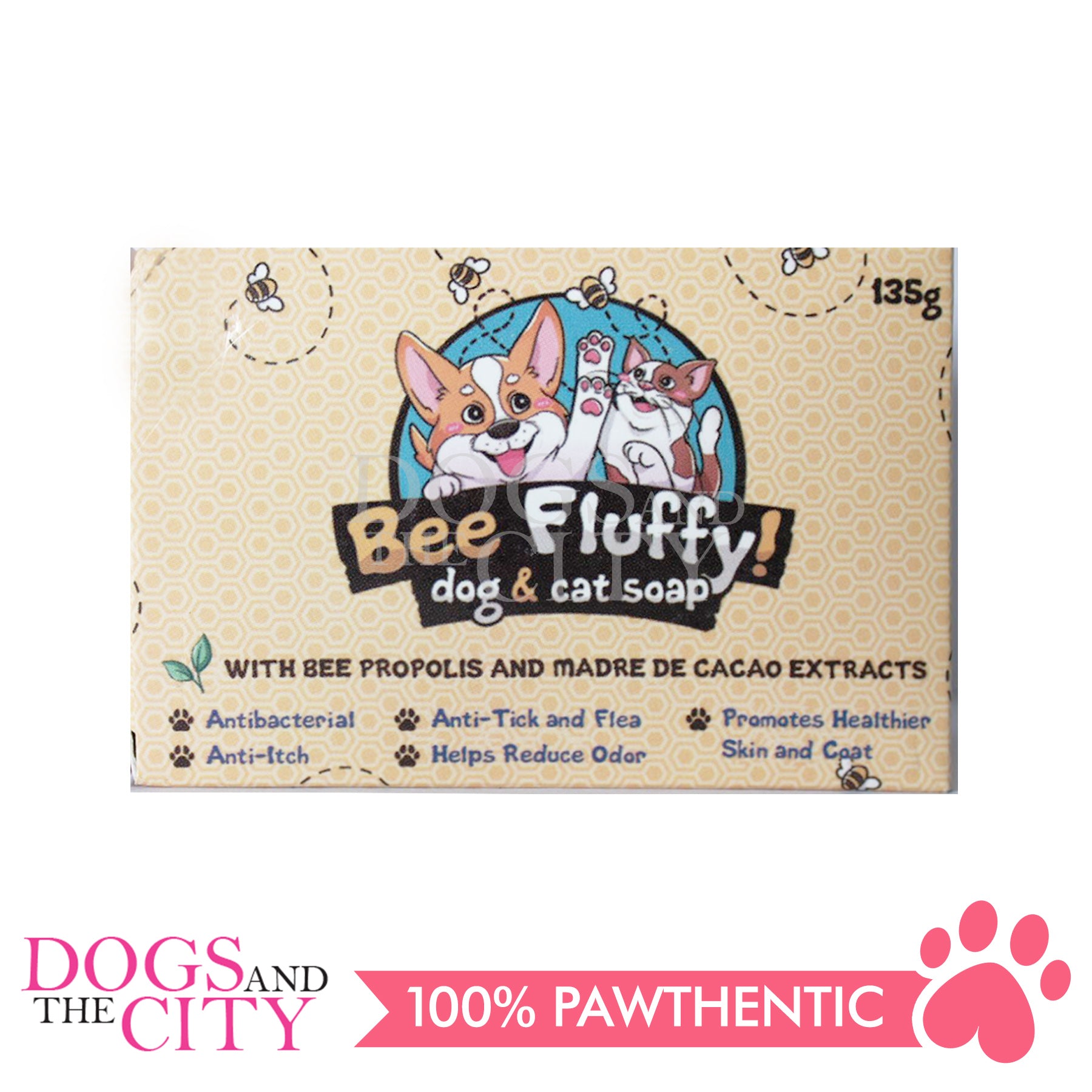 Bee Fluffy! dog and cat soap is an herbal, vet-formulated, non-medicated cleansing soap that is made with bee propolis and madre de cacao extracts.