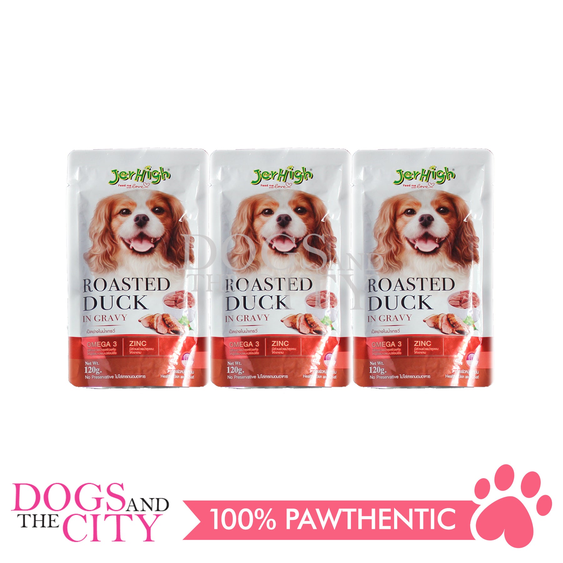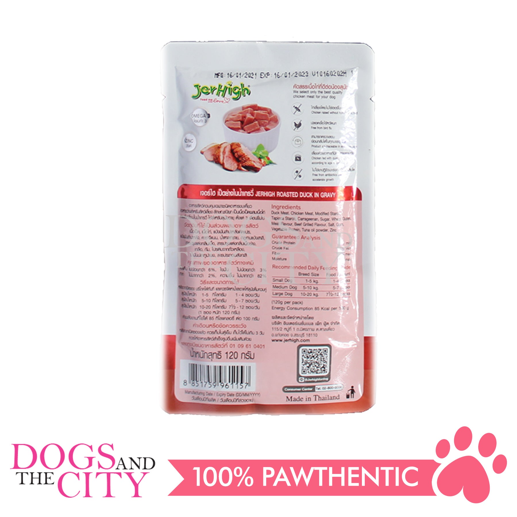 JerHigh Roasted Duck in Gravy is made from real chicken and duck meat and has been precisely prepared by our highly experienced expert team. It has also been researched and meticulously tested in the laboratory to ensure that the treat is hygienic, safe, and filled with all of the nutrients man’s best friend needs. You sure can reward them regularly with JerHigh Roasted Duck in Gravy so they always stay healthy, happy, and full of energy.