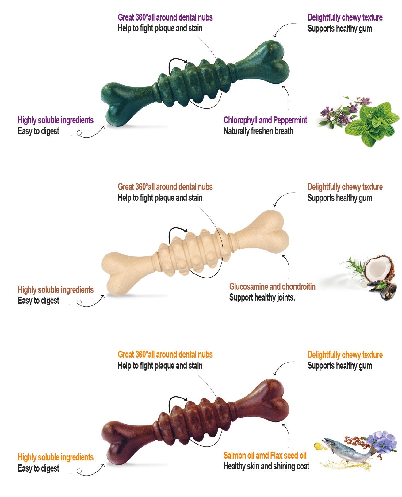 - Featuring potatoes plus a delightfully chewy texture that fights plaque and tartar, your dog can't wait to chew this grain free dental treat.