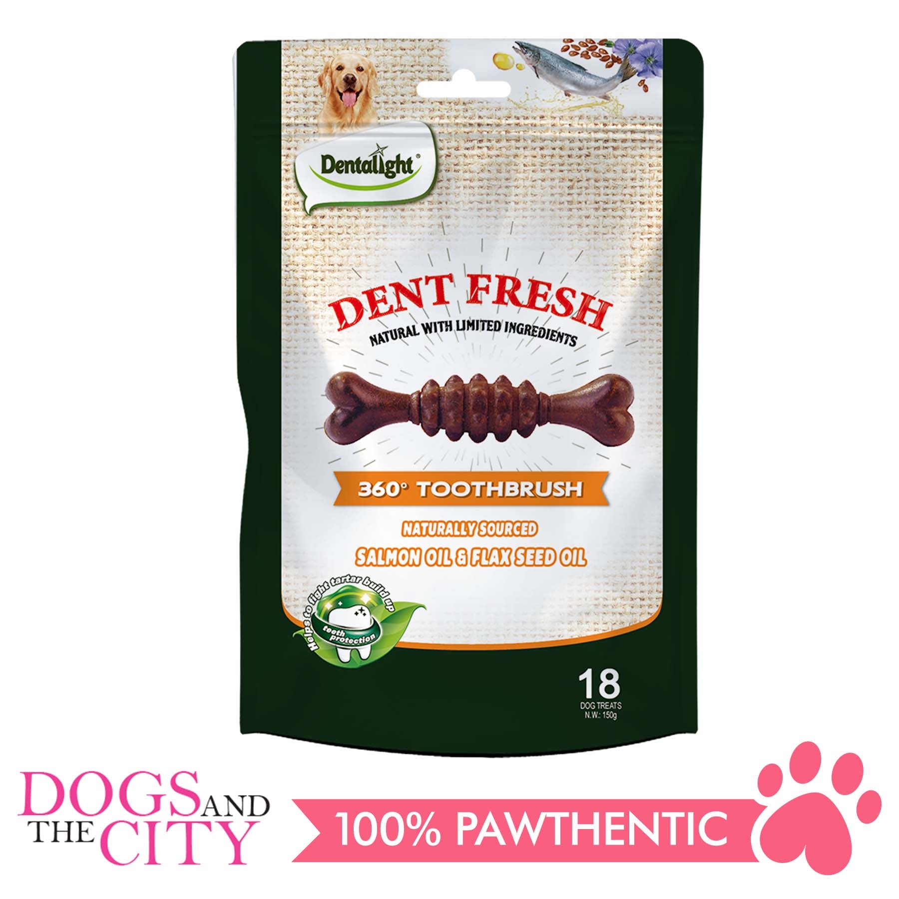 Dentalight 8216 Dent Fresh 3" Salmon Oil and Flax Seed Dog Treats 150g - Dogs And The City Online