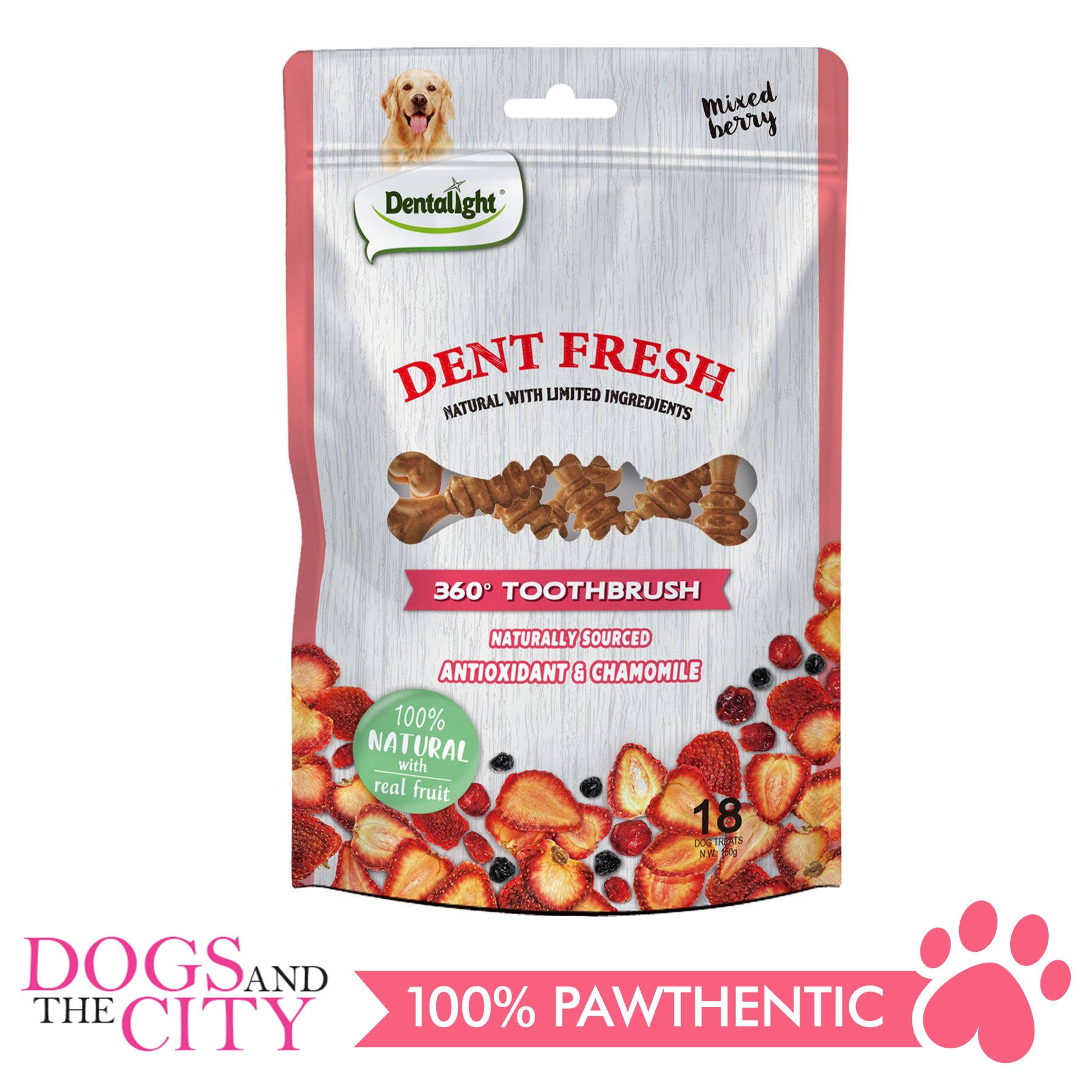 Dentalight 9558 Dent Fresh 3" 360° Toothbrush Mixed Berry 18 pieces Dog Dental Chews - Dogs And The City Online