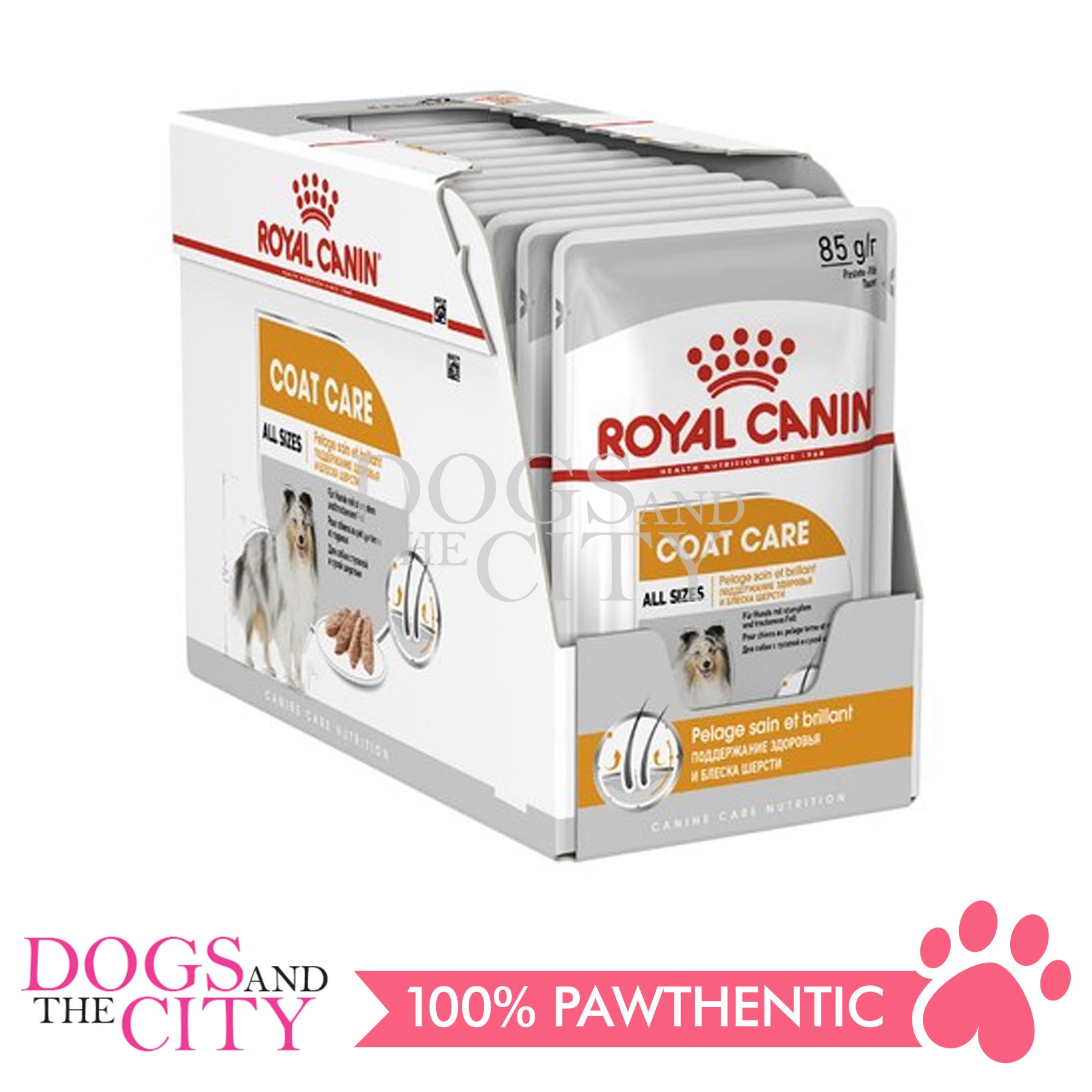 • Royal Canin Coat Care is specifically formulated to support hair growth and coat shine in all breeds of dogs.