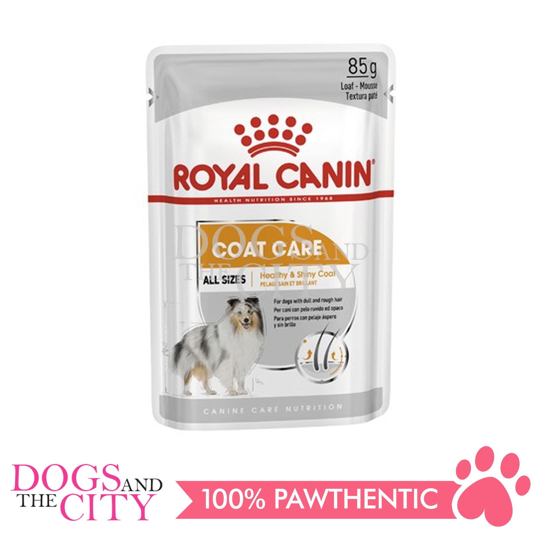 Royal Canin Coat Care Loaf Pate Adult Dog Wet Food Pouches 85g (12packs)